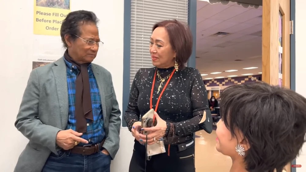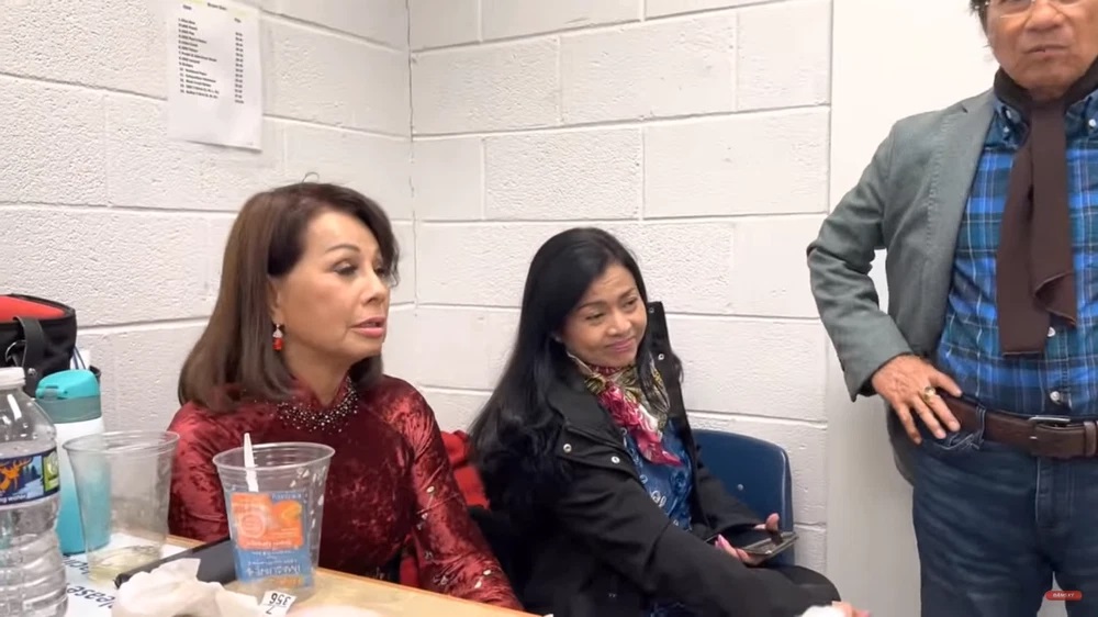 Mới đây, trên kênh Youtube của nghệ sĩ cải lương Ngọc Huyền đã đăng tải một clip quay lại cảnh hậu trường trước giờ diễn. Trong đó có sự xuất hiện của danh ca Thanh Tuyền, Phương Hồng Quế, Chế Linh cùng vợ là bà Vương Nga.