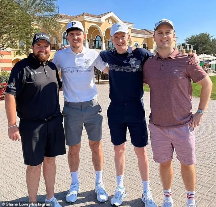 Tận dụng khoảng thời gian nghỉ này, các ngôi sao đang thi đấu ở Ngoại hạng Anh đã tranh thủ có những hoạt động nghỉ ngơi, thư giãn. Trong ảnh là trung vệ đội trưởng Maguire của MU đang đi đánh golf cùng những người bạn.