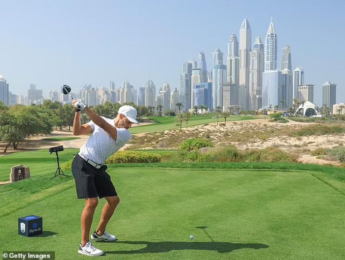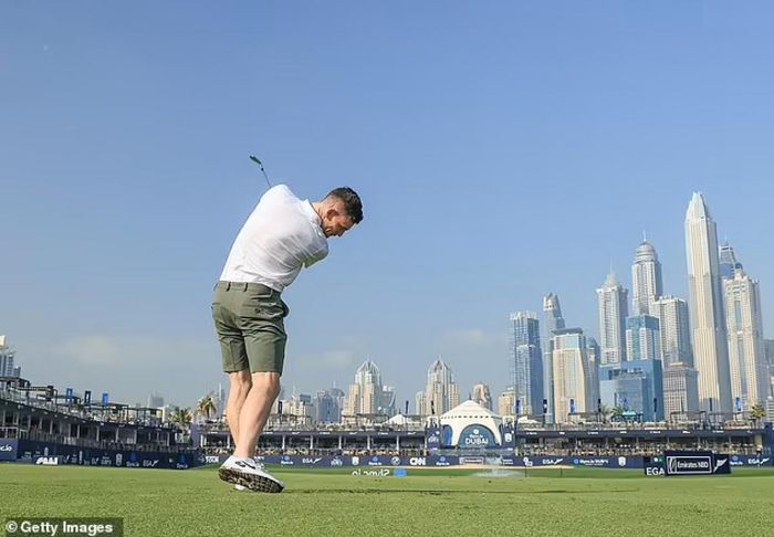 Dàn cầu thủ Liverpool lại tham dự giải đấu Golf Pro-Am ở Dubai. Trong ảnh là Oxlade-Chamberlain đang thực hiện cú đánh.
