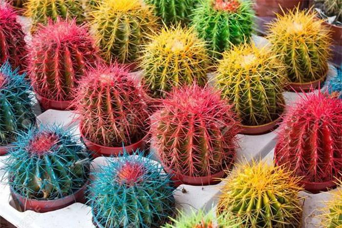 Ở chợ hoa cũng có không ít các cây cảnh được nhuộm màu xanh làm, vàng, đỏ, đặc biệt là các cây xương rồng, cây bóng nước. Tuy nhiên, đây cũng là lý do cây chết sau khi mới mua được vài ngày bởi phun những hóa chất độc hại khiến cây không thể quang hợp được.