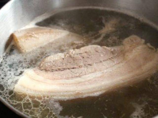 Thịt lợn rửa sạch, loại bỏ phần lông còn sót lại trên da. Sau đó dùng muốt hạt (muối trắng) chà xát xung quanh miếng thịt, thêm một chút giấm để rửa thịt. Cuối cùng rửa lại thịt bằng nước sạch để loại bỏ chất bẩn và khử mùi hôi.