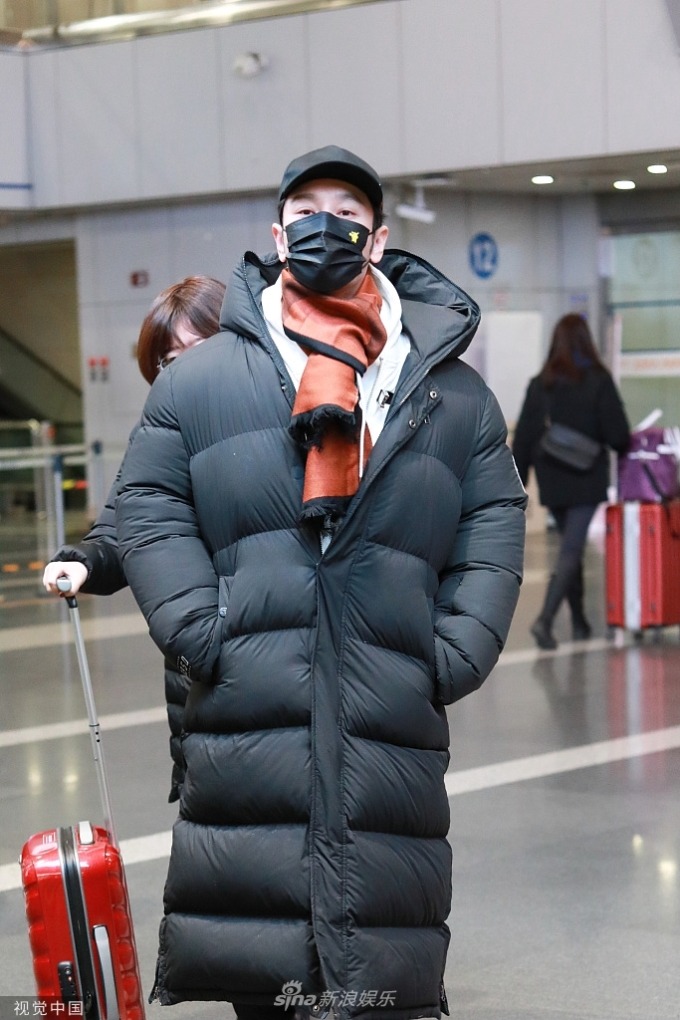 Huỳnh Hiểu Minh tại sân bay hôm 29/1. Ảnh: Sina