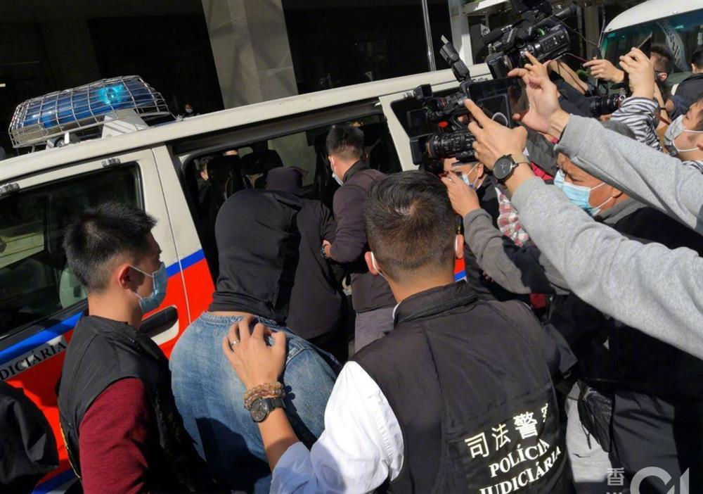 Toàn cảnh chồng An Dĩ Hiên bị áp giải, bịt kín mặt. Theo báo chí Đài Loan đưa tin, chồng của nữ diễn viên An Dĩ Hiên là Trần Vinh Luyện đã bị cảnh sát Macau bắt giữ ngày hôm qua (29/1).