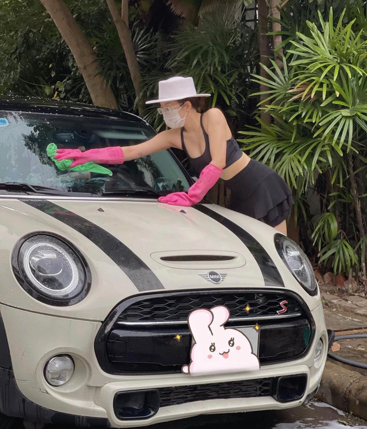 Old  Default Trâm Anh diện đồ mát mẻ rửa xe, thân hình gợi cảm mặc gì cũng "đáng yêu"