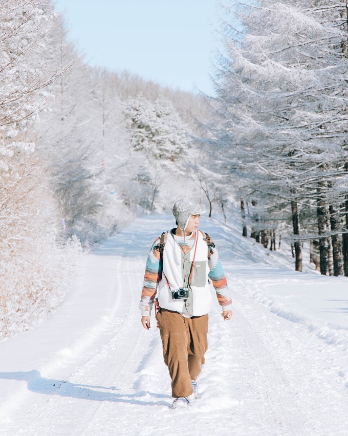 Sau khi ngắm bình minh, cả đoàn quay trở lại xe, rảo bước xuyên qua những khu rừng phủ đầy tuyết trắng. Những ánh nắng ấm xuyên qua từng tán cây. Cảm xúc thật khó diễn tả. "Giống như được mẹ thiên nhiên ôm vào lòng vỗ về, cảm giác ấm quá, khi chẳng có cơn gió nào có thể chạm lấy tôi khi được khu rừng bao quanh mình. Đây có phải một chút bình yên mà ta luôn tìm kiếm không?", Đức Anh bồi hồi nhớ lại.