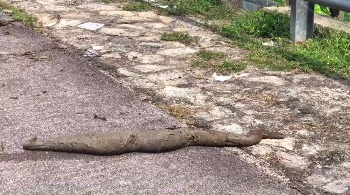 Trong video, có thể thấy con vật khá to, dài chắc cũng cỡ cả mét là ít. Điều đáng nói là cách nó bò trườn sang đường, trông chẳng giống rắn mà cũng không phải là giun. Nói chung càng nhìn càng nổi da gà, và càng “đau não”.