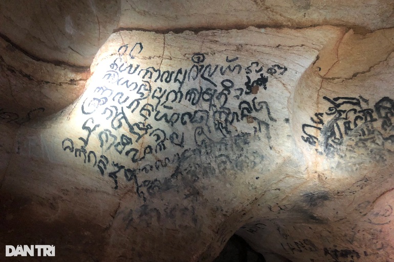 Bên trong vách động được viết, khắc bằng chữ Phạn, các nhà khoa học đã tìm thấy 97 ký tự bằng chữ Chăm cổ khắc trên vách đá cùng tượng đá, tượng phật, mảnh gốm và nhiều bài vị…