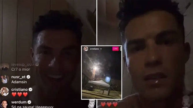 C. Ronaldo vô tình phát trực tiếp hình ảnh trong phòng tắm hơi. Ảnh: SBB