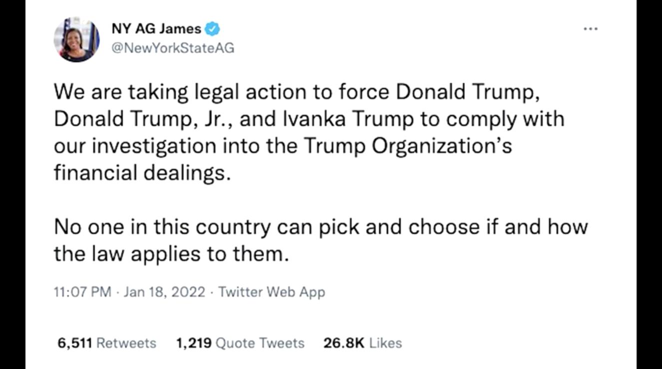 Văn phòng luật sư quận Manhattan và văn phòng biện lý New York, Letitia James, đang điều tra xem liệu ông Trump có sử dụng các bản báo cáo để lừa những người cho vay của ông cung cấp cho ông các điều khoản cho vay tốt nhất có thể hay không.