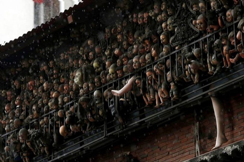 Đi ngang qua ban công của những con búp bê vào ban ngày là đủ rùng rợn, nhưng làm điều đó vào ban đêm bạn cần có một tinh thần thép. Những hạt mưa xen lẫn bụi bẩn chảy xuống mặt búp bê như những giọt nước mắt đen, và bạn sẽ có một cảnh kinh dị ngoài đời thực.
