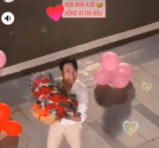 Mới đây, trên trang Facebook cá nhân của mình, Midu đăng tải đoạn video được một người đàn ông dàn dựng công phu ngập bóng bay và hoa để cầu hôn, netizen nhanh chóng nhận ra đó là Kiều Minh Tuấn. Nam diễn viên ôm bó hoa lớn sau đó nhảy nhót cực sung bày tỏ tình cảm với Midu.