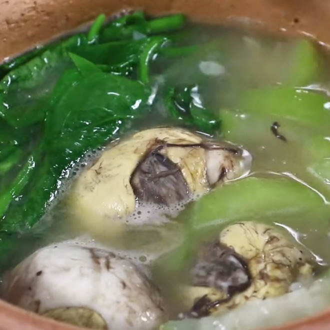 Trứng vịt lộn um bầu mồng tơi đơn giản tại nhà