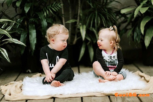 Hai đứa bé ăn trưa ở nhà trẻ.