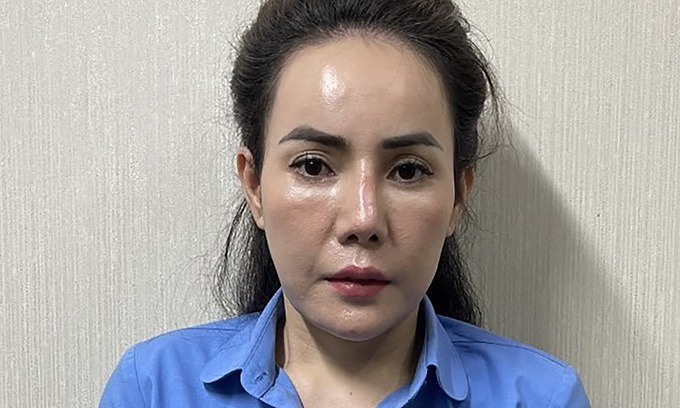 Nguyen Dieu Mo, general director of the An Binh Air Services and Tourism Trading Company Limited, is at a police station. Photo by the Ministry of Public Security