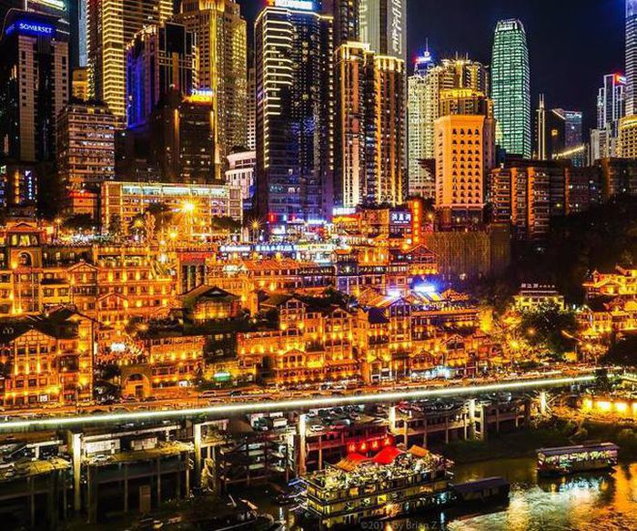 Nhìn từ trên cao, Trùng Khánh trông chẳng khác gì Dubai với những tòa nhà cao trọc trời. Nơi đây là trung tâm sản xuất xe hơi lớn thứ 3 toàn quốc và đứng đầu về ngành sản xuất mô tô. Dù đường xá chằng chịt và dễ lạc đường nhưng thành phố này lại có sự kết hợp khá độc đáo về văn hóa khi một tòa nhà hiện đại có thể nằm ngay cạnh một ngôi nhà cổ.