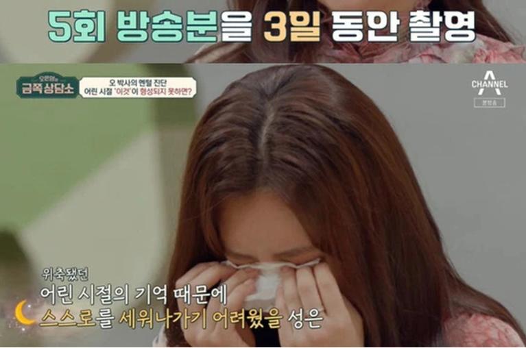 Nữ diễn viên trẻ nhận lời tham gia chương trình Golden Counseling Center của Hàn Quốc, phát sóng ngày 15/4, để chia sẻ những khó khăn trong cuộc sống sau thời gian dài vắng bóng. Trong đó, cô đã rơi nước mắt khi kể về mối tình nghiêm túc với một người bạn trai cũ.