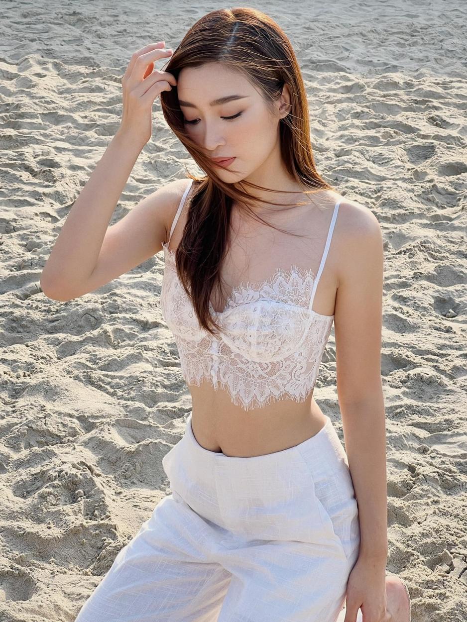 Người đẹp diện áo crop-top chất liệu ren xuyên thấu, khoe khéo vóc dáng thanh mảnh và vòng eo "con kiến" đáng ngưỡng mộ.