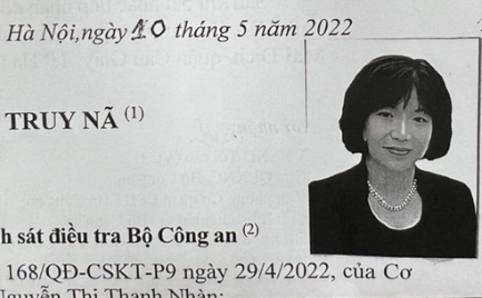 Căn cứ Quyết định khởi tố bị can của Cơ quan CSĐT Bộ Công an đối với Nguyễn Thị Thanh Nhàn - Chủ tịch HĐQT Công ty Cổ phần Tiến bộ Quốc tế (AIC). Đồng thời xác minh bị can Nguyễn Thị Thanh Nhàn bỏ trốn. Căn cứ Điều 36 và Điều 231 Bộ luật Tố tụng Hình sự; ngày 10/5/2022, Cơ quan CSĐT Bộ Công an ra quyết định truy nã đối với bị can Nguyễn Thị Thanh Nhàn.