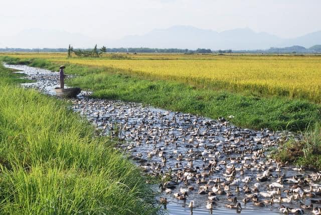 Tôi không biết quê Sáng ở đâu, mấy lần nghe loáng thoáng ở An Bình, Phước Long gì đó. Mùa gặt năm nào anh cũng xuôi ghe chở bầy vịt đổi đồng về xóm Rạch Giồng này. Rồi cất cái chòi lợp bằng lá chuối, quây lưới cầm vịt trên khúc đê trồng so đũa. Từ chỗ này, mỗi ngày anh lang thang lùa vịt đi ăn khắp cả vạt đồng, qua tới vườn xóm Lung. Tới khi người ta bừa đất chuẩn bị sạ vụ mới, Sáng lại ra đi.