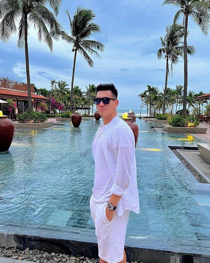 Thay vì chọn quần dài nghiêm túc, Tiến Linh phối áo polo cùng quần short để trông trẻ trung hơn. Trong những dịp cần sang trọng, anh chọn áo sơ mi đến từ các thương hiệu, không quên xắn tay áo để thể hiện nét khỏe khoắn.