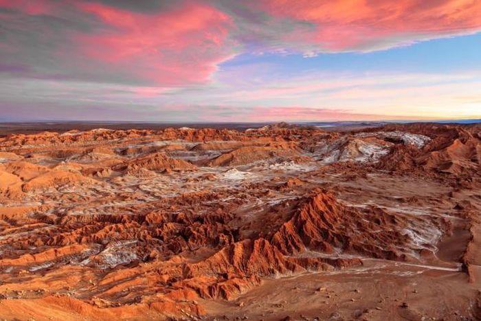 Sa mạc Atacama ở Chile là nơi khô hạn nhất trên thế giới ngoài các vùng cực. Có diện tích hơn 105.000km vuông, và trải dài 1.000km từ bắc xuống nam, khu vực này của Chile nằm giữa một bên là dãy núi Andes và một bên là Thái Bình Dương.