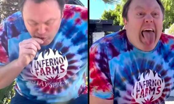 Người đàn ông đến từ California ăn hết ba quả ớt thuộc giống cay nhất thế giới để lập kỷ lục.