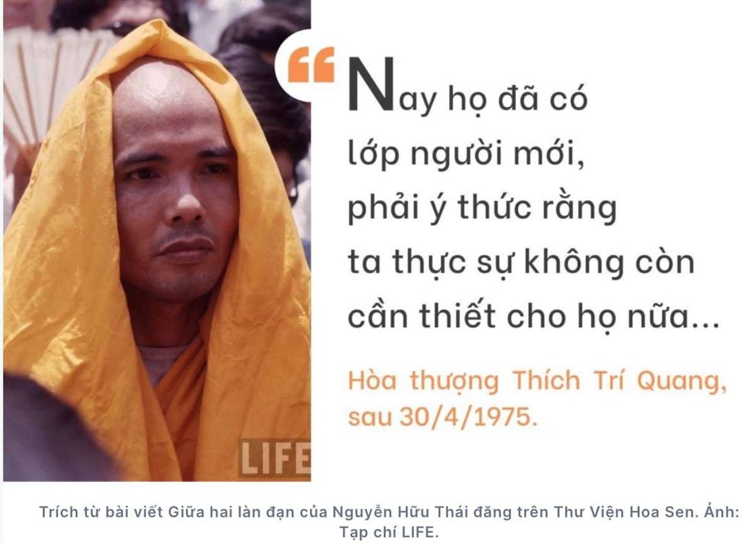 Khi được hỏi tại sao các nhà sư Ấn Quang phải tranh đấu với chế độ cộng sản sau khi đã gây ra quá nhiều rắc rối cho chính quyền ông Thiệu, ông trả lời: “Dưới chế độ của ông Thiệu, chúng tôi chỉ chống tham nhũng mà thôi. Bây giờ, dưới chế độ cộng sản, chúng tôi không thể tồn tại được. Giờ đây, chúng tôi phải chiến đấu để sống hoặc chết”.