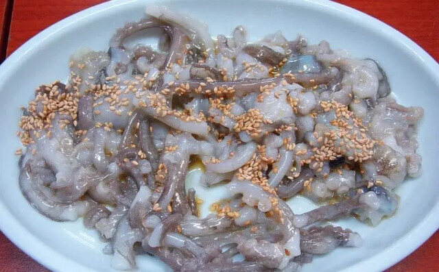 Sannakji, hay còn gọi là bạch tuộc sống, món ăn này được cho là kỳ lạ, thậm chí là “kinh dị” là bởi vì những con bạch tuộc tươi sống sẽ được thực khách cho vào miệng ngay khi còn giãy giụa trên đĩa. Bạch tuộc được chuẩn bị cho món ăn này thường là bạch tuộc baby còn tươi sống, ta rửa sạch sau đó cắt chúng thành các miếng nhỏ và chấm cùng với dầu mè hoặc bột ớt Hàn Quốc để thưởng thức. Món ăn này còn khảo nghiệm độ gan dạ của thực khách khi chúng rất “sống động” trên đĩa, lý do là các dây thần kinh và các giác hút trên xúc tu vẫn còn hoạt động, bạn phải nhai các miếng bạch tuộc nhai thật mạnh và kĩ trước khi nuốt xuống dạ dày để tránh bị hóc.