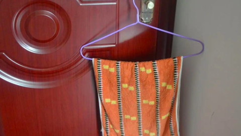 Bước thứ hai là chuẩn bị một chiếc khăn và một chiếc móc áo. Nhúng chiếc khăn vào nước vừa rồi, vắt khăn sang trạng thái "khô một nửa" rồi treo lên móc áo.