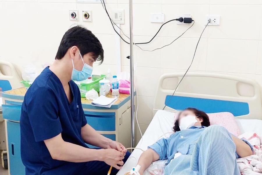 Nữ bệnh nhân được phẫu thuật cấp cứu lấy khối u não. Hậu phẫu, người bệnh được chuyển sang Trung tâm Y học hạt nhân và Ung bướu, Bệnh viện Bạch Mai điều trị hóa trị phối hợp điều trị đích.