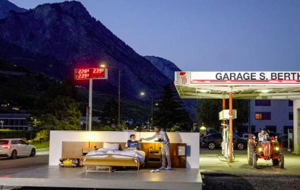 Frank và Patrik Riklin từng tạo ra những căn phòng không tường không mái che ở những địa điểm bình dị, nhưng đây là địa điểm ‘không bình dị’ và không chỉ để nghỉ dưỡng đầu tiên của họ. Căn phòng mới nhất đặt ở một trạm xăng dầu tại làng Saillon, Valais, miền nam Thụy Sĩ.