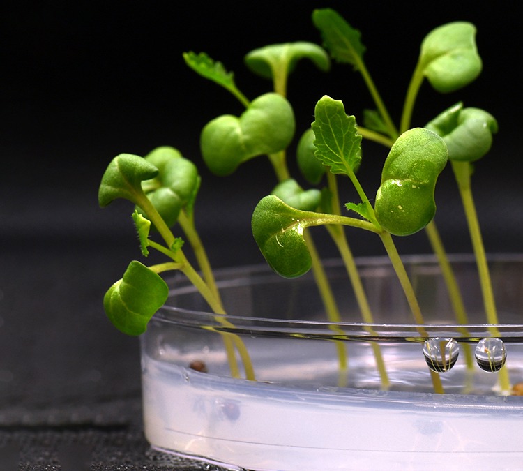 Cây mọc hoàn toàn trong bóng tối với môi trường axetat thay thế quá trình quang hợp sinh học. Ảnh: Marcus Harland-Dunaway/UCR