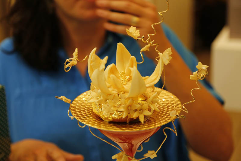 Tuy nhiên, để chiếc bánh thêm phần giá trị, người ta còn dát vàng lá 24 carat, vàng bụi 23 carat và kim cương có thể ăn được.