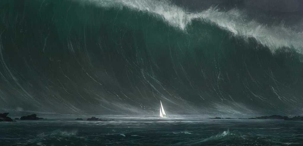 H́nh minh họa sóng sát thủ cao khủng khiếp trên đại dương. Ảnh: Saltwater-dreaming