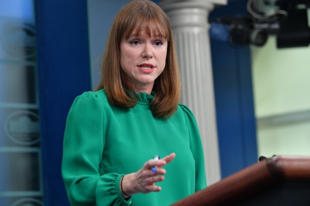 Giám đốc truyền thông Bedingfield trong cuộc họp báo ở Nhà Trắng ngày 30/3. Ảnh: AFP.