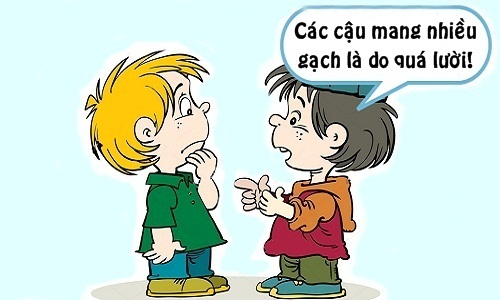 Thấy Tèo một chuyến chỉ mang một viên gạch, trong khi mọi người đều mang hai viên, một bạn liền nói: