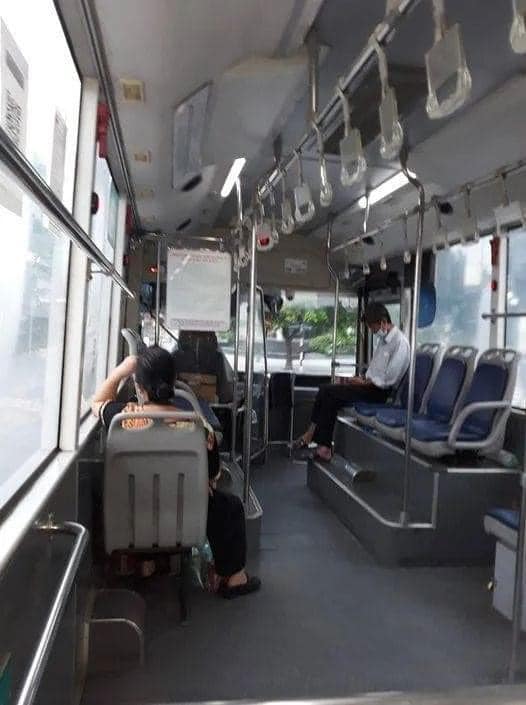 Hôm nay mùng 1 đầu tháng 8, có 2 bà cháu lên xe buýt. Bà thì có thẻ người cao tuổi, cháu thì nhỏ nhỏ xinh xinh, mình nghĩ tầm 5 tuổi thôi à.