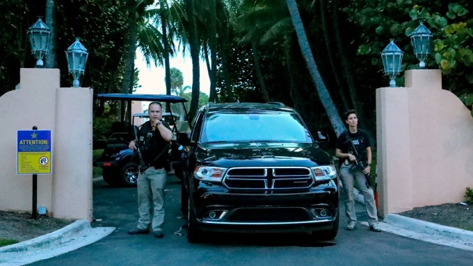 Đặc vụ mang súng đứng gác ngoài dinh thự Mar-a-Lago thuộc Palm Beach, bang Florida hôm 8/8. Ảnh: Palm Beach Daily News.