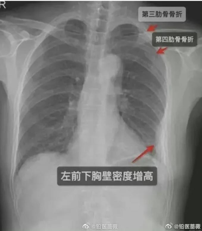 Năm ngày sau, cơn đau không thuyên giảm, cô gái đến bệnh viện kiểm tra. Kết quả chụp X-quang cho thấy cô bị gãy ba xương sườn, gồm hai chiếc ở bên phải và một chiếc ở bên trái. Cô phải nghỉ việc khiến thu nhập giảm, chi khoản tiền lớn cho viện phí và các dịch vụ chăm sóc vết thương.