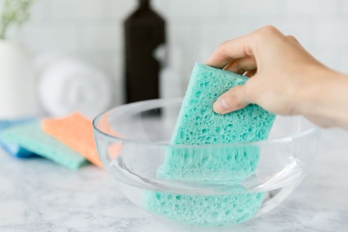 Làm sạch và khử trùng miếng bọt biển rửa bát