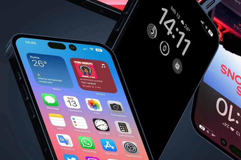 Hình ảnh kết xuất iPhone 14 Pro chạy trên nền tảng hệ điều hành iOS 16