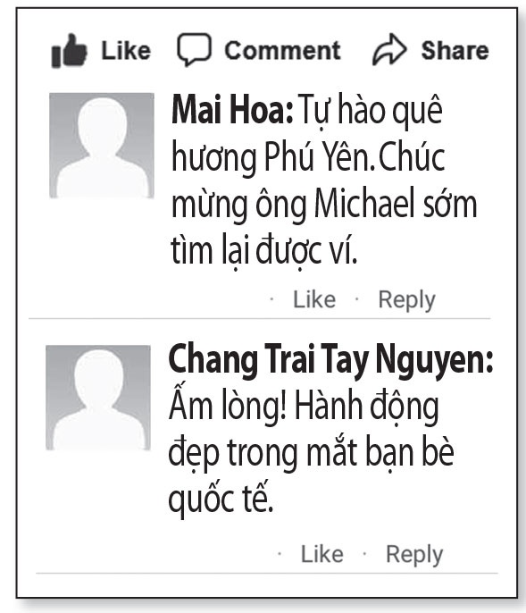 Câu chuyện được một tài khoản đăng lên mạng xã hội Facebook đã nhanh chóng nhận được sự chú ý của cư dân mạng. Chỉ sau ít giờ, bài viết nhận được hơn 10.000 lượt thích, hàng nghìn lượt bình luận, chia sẻ. Đa phần mọi người đều thể hiện sự ngưỡng mộ đối với chàng trai đã giúp đỡ người đàn ông nước ngoài lúc hoạn nạn, thể hiện được sự hào hiệp, lòng tốt của người Việt Nam; đồng thời hy vọng khổ chủ sớm tìm lại được ví.