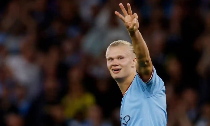Tiền đạo Erling Haaland ghi ba bàn giúp Man City hạ đội khách Nottingham 6-0 ở vòng năm Ngoại hạng Anh tối 31/8.