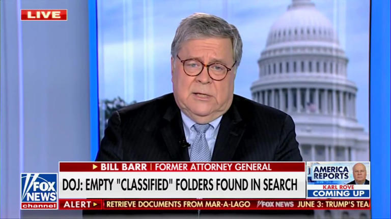 “Và bất cứ tài liệu nào khác bị thu giữ, như tạp chí truyền thông, và những thứ khác trong thùng đựng thông tin mật, thì chúng được thu giữ theo trát khám xét, vì chúng cho thấy những điều kiện thông tin mật được cất giữ,” Barr nói tiếp. “Vì vậy tôi nghĩ đó là ngụy biện đánh lạc hướng. Tôi nghĩ, ở giai đoạn này, họ đã kiểm tra số tài liệu, tôi nghĩ phí thời gian mà thôi.”