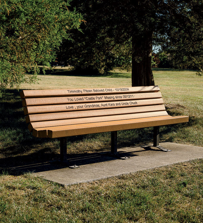 Bà ngoại Timothy đã đặt một chiếc ghế dài trong công viên mà bà thường đến thăm cùng Timmothy với những dòng chữ tưởng nhớ và nhắn tìm cháu. Ảnh: Chicago mag