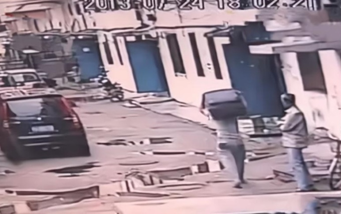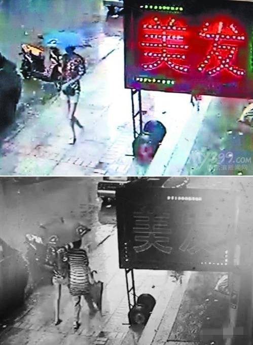 Camera giám sát ở ngã tư cho thấy Tuyên che ô màu xanh đến nhà bạn, sau đó đỡ một thai phụ đi về hướng ngược lại. Ảnh: Sina