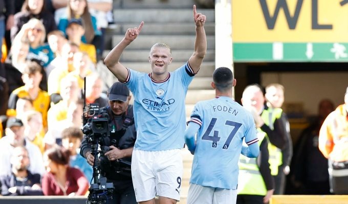 Haaland mừng bàn thắng trước Wolves ngày 17/9. Ảnh: mancity.com