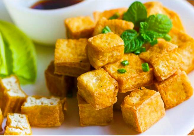 Ngoài ra, bạn không nên vội vàng lật miếng đậu. Hãy đợi đậu vàng một mặt mới lật mặt kia rán tiếp. Sau khi chiên vàng giòn đều hai mặt, bạn cho đậu ra đĩa và thưởng thức khi còn nóng.