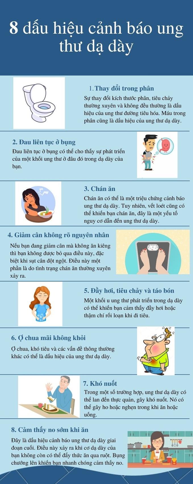 Ung thư dạ dày hoàn toàn có thể điều trị khỏi nếu được phát hiện ở giai đoạn sớm. V́ thế, nếu thấy những dấu hiệu dưới đây bạn cần lưu ư:
