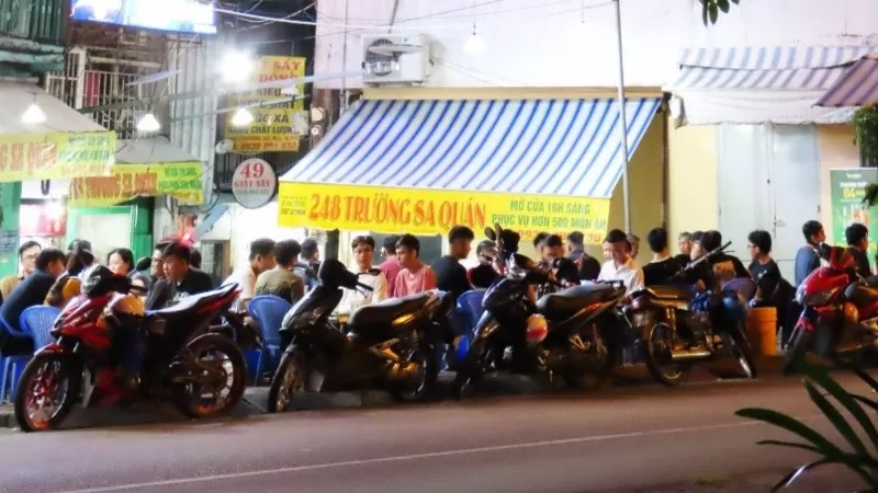 Quán nhậu trên đường Trường Sa, quận Bình Thạnh hầu như lúc nào cũng đông nghẹt khách, kể cả tối ngày thường.